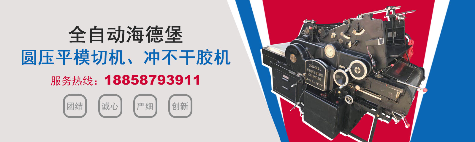 瑞安市恒柯機械廠(www.wzhkjx_com.cdwtyy.cn)是國內專業制造銷售全自動模切機,全自動燙金機,圓壓平模切機,圓壓平燙金機,滾筒燙金機,沖不干膠機,海德堡凸印機.銷售的產品系列規格齊全,產品具有速度快,壓力均勻,套印準確等特點。